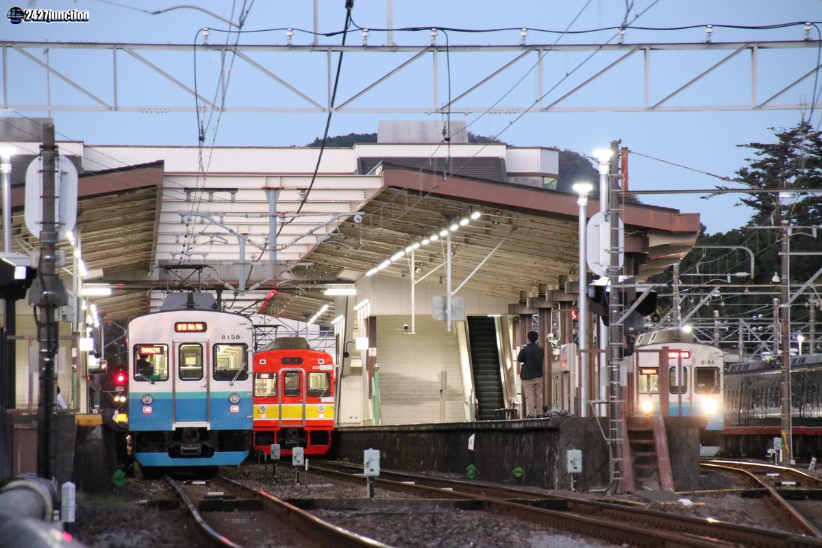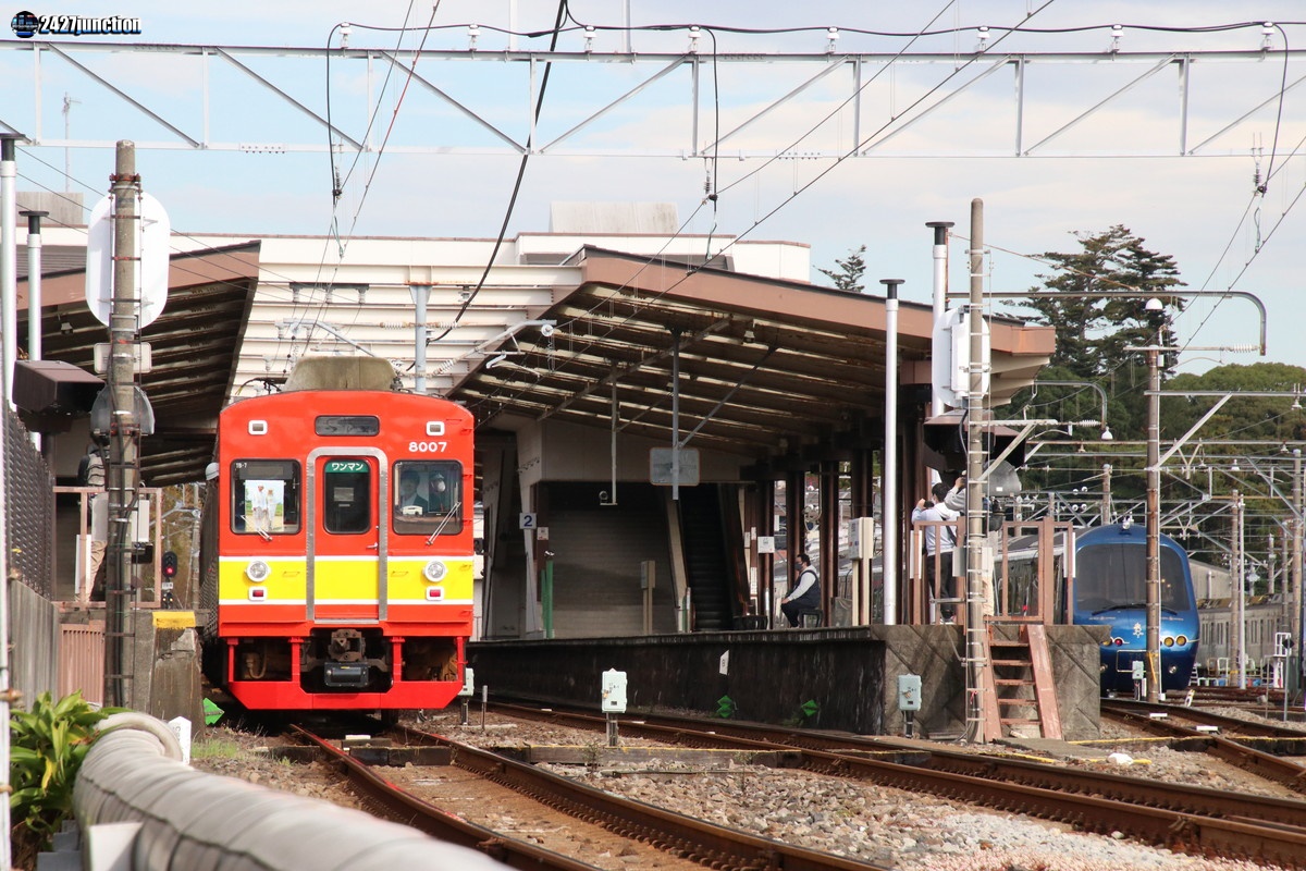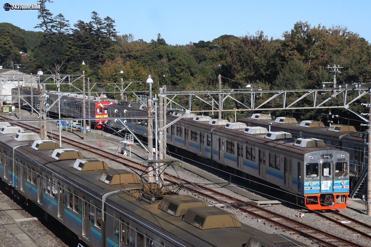 撮影会を終え、伊豆高原電車区を出庫するTB-7編成。いよいよこれからKCIカラーの車両が本線上を走行する。
