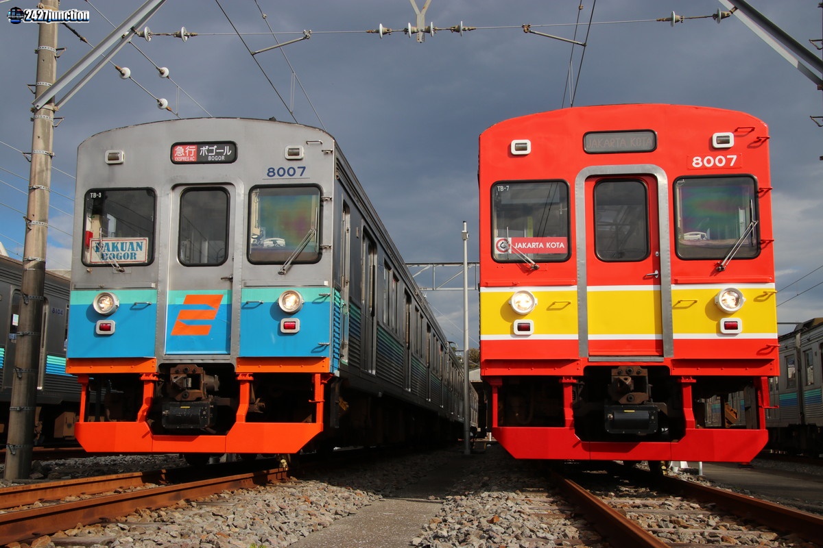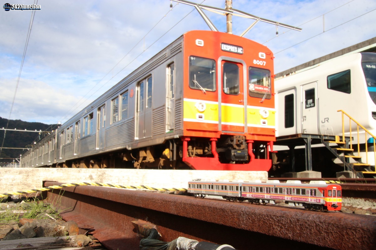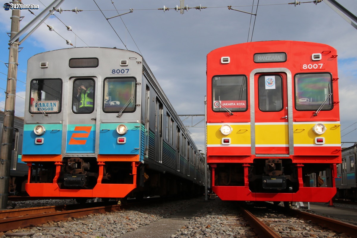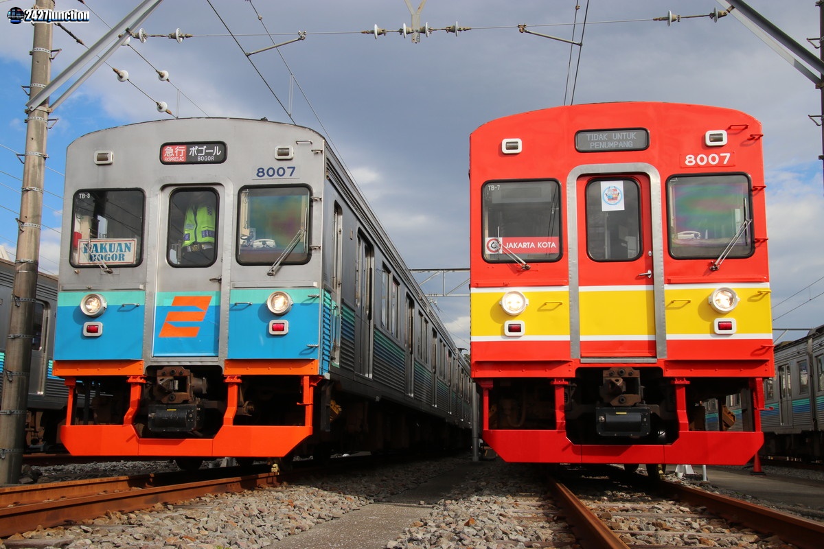 8007号車の貫通扉に旧KCJ(PT KAI Commuter Jabodetabek)のロゴマークのプレートを掲出しての撮影も行われた。