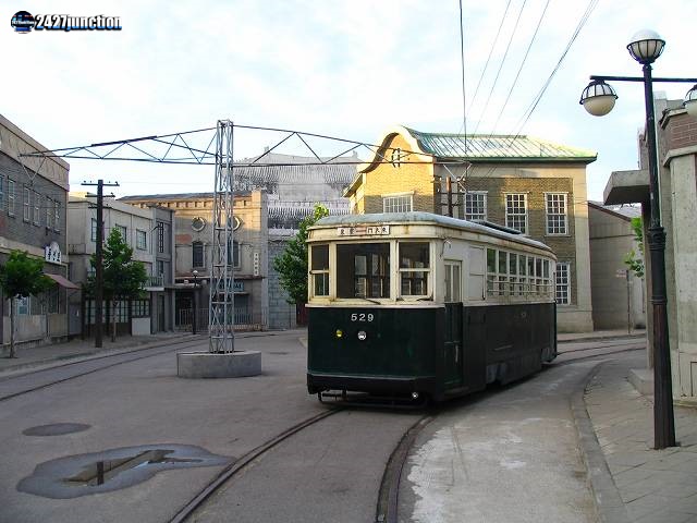 ![]() | 同じくソウル市電を模した529号。スタジオ内にはこの2本があり、実際に客を乗せて運行する。 |