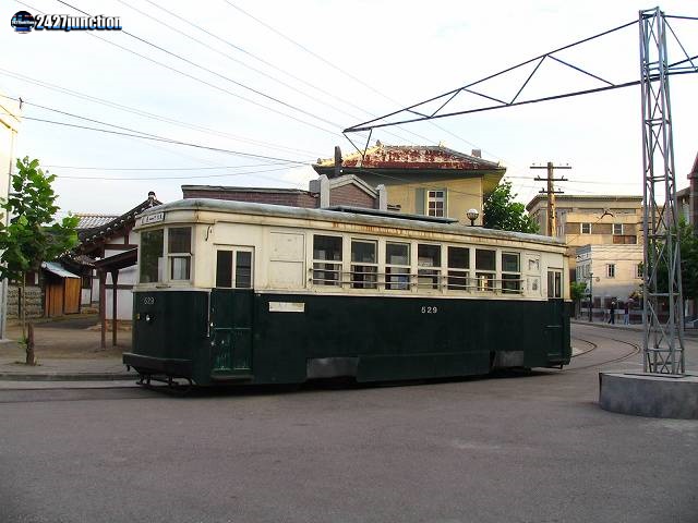 ![]() | ファンタスティックスタジオ富川の中のソウル市電を模した車両、526号。バッテリー駆動。町並みは日帝時代を再現しているが、塗装は戦後の白と濃緑のツートンカラー。 |