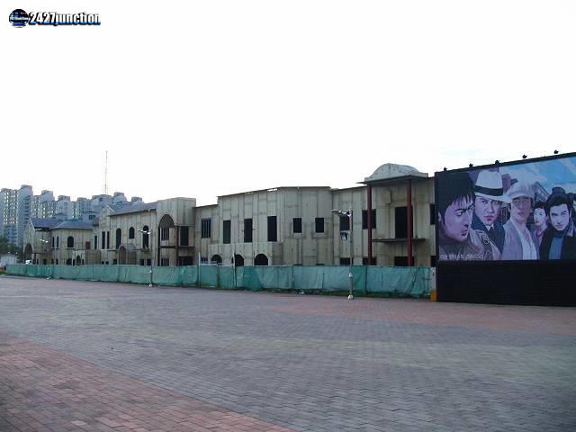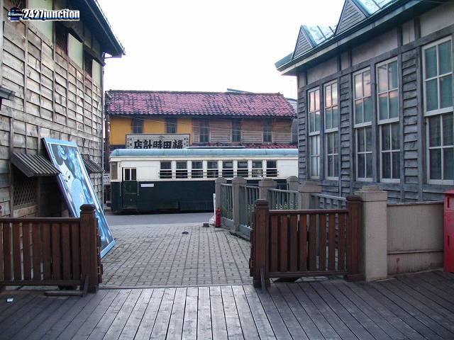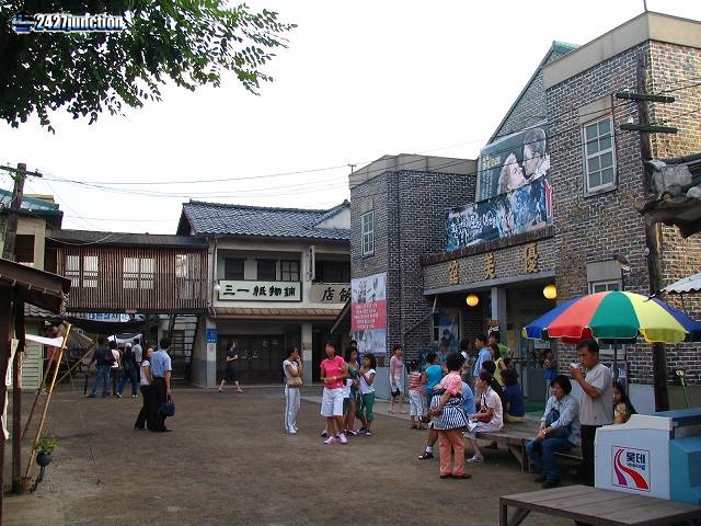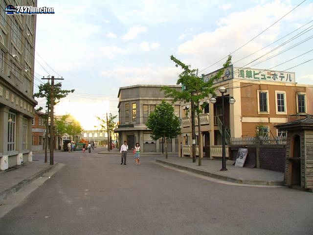 ![]() | セットの町並み。いたるところに日本語がかかれている。 |