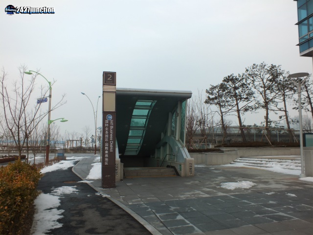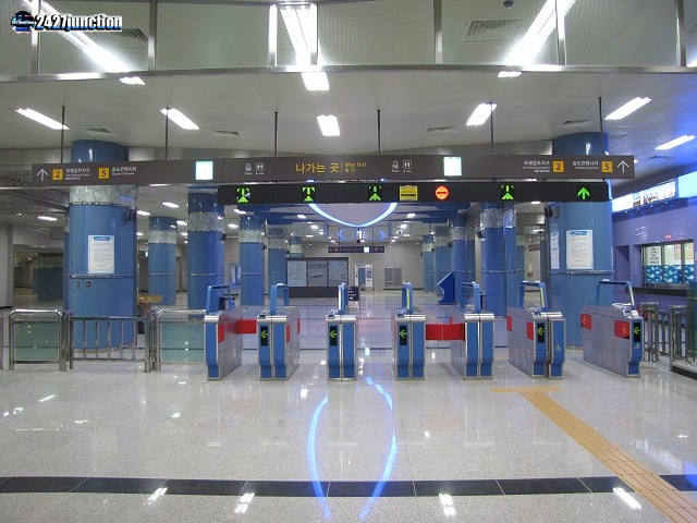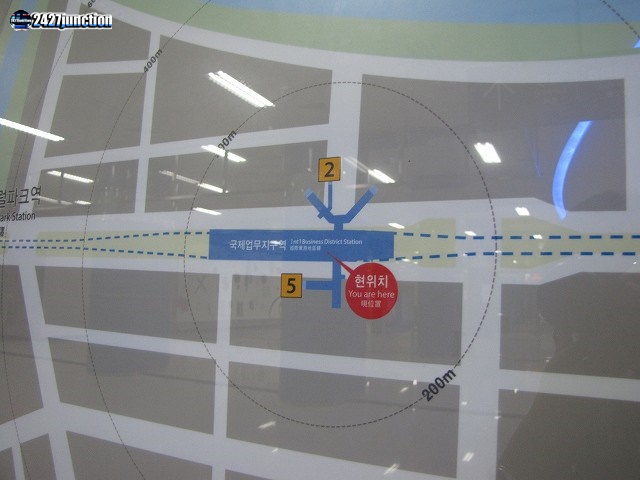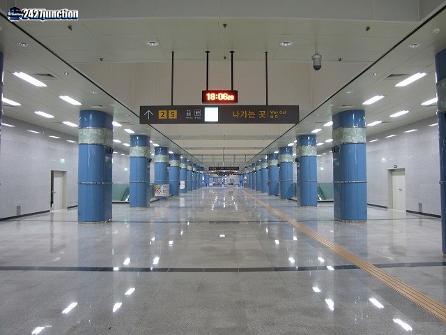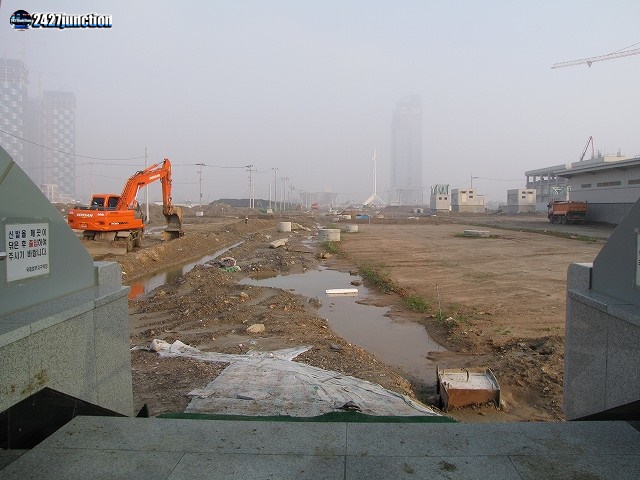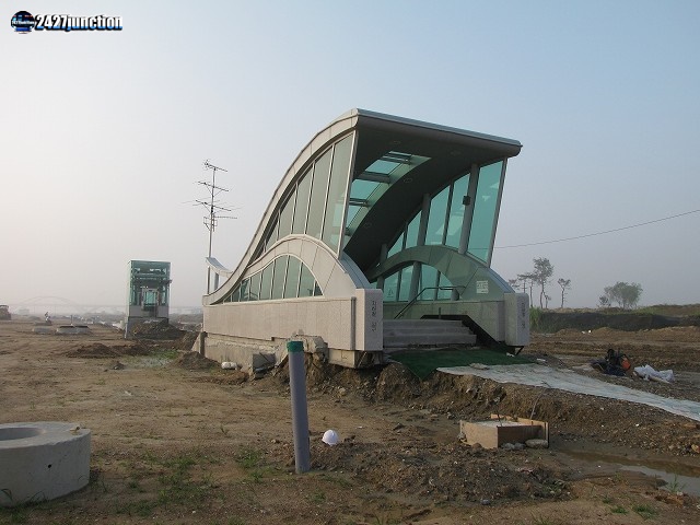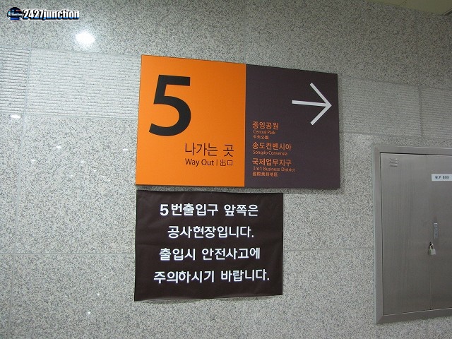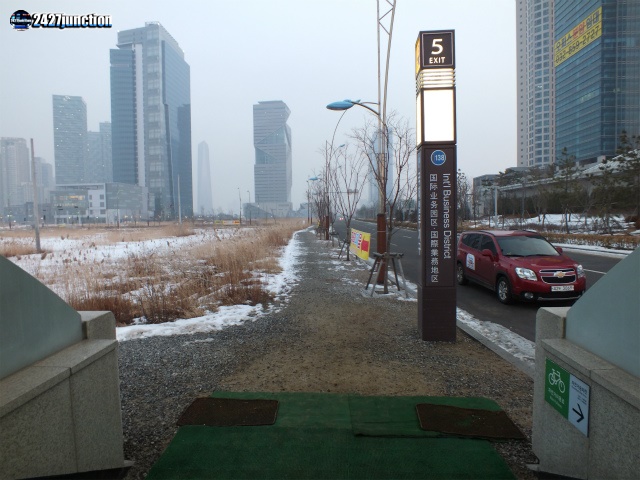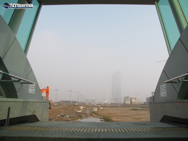 ![]() | 未開発地域のど真ん中に位置していた、国際業務地区駅5番出入口。出入口前が舗装されていないどころか、道路すら存在しなかった。 |