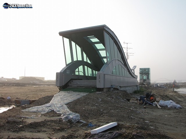 ![]() | 開業時にもうひとつ整備された、2番出入口の前の様子。建設現場の隣に出た。 |