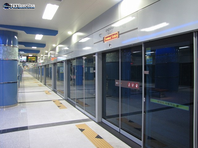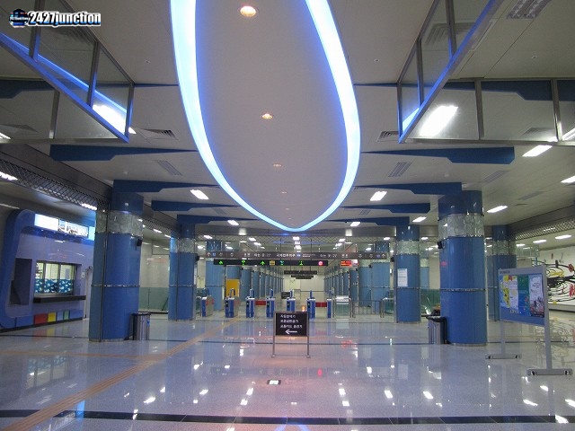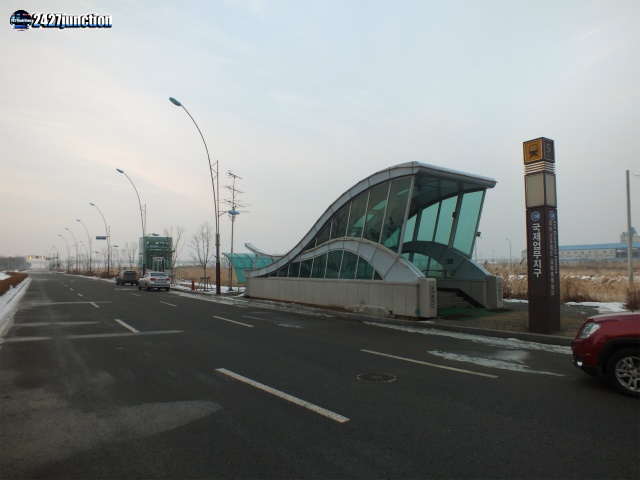| 2009年6月30日に東幕〜国際業務地区 間が延伸開業した、仁川都市鉄道(仁川地下鉄)1号線。その延伸区間の終着駅、国際業務地区(クッチェオンムジグ)は開業当初、工事現場の真ん中に位置し、駅から出ても全く公道に接続しておらず、どこにも行くことが出来ない駅であった。当時の1日平均乗車人員は200名強で、大半が周辺地域の工事関係者の利用と思われる。 2012年には当駅のホームにて、PSYの「GANGNAM STYLE」(江南スタイル)のPV撮影が行われた。 ここでは、2009年8月の駅周辺の様子を紹介する。また、駅前道路や周辺のビルの建設が完了した2013年1月時点の様子も併せて紹介する。 |