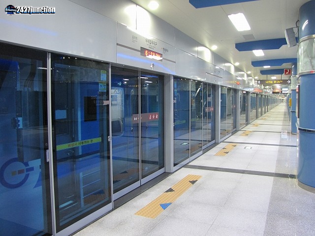 ![]() | プラットホームスクリーンドア(PSD)。ドア上には1箇所おきにLEDが設置されている。 |