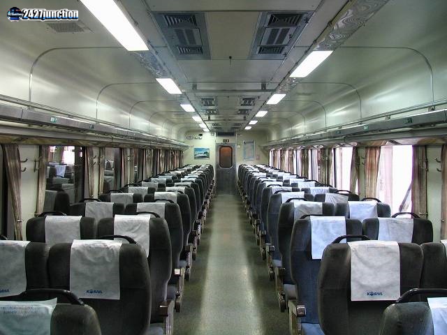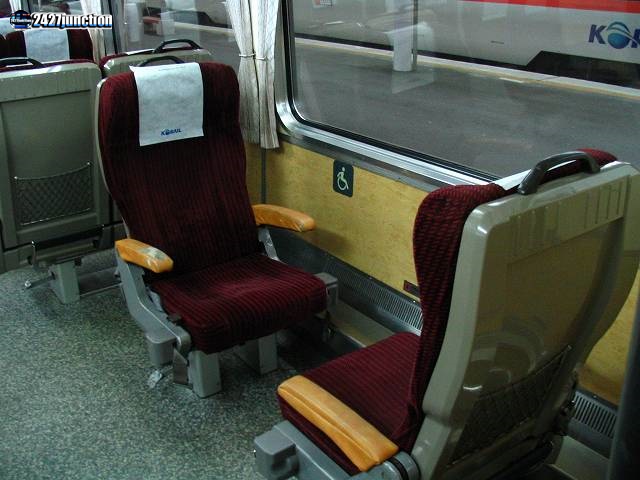 ![]() | ムグンファ号に格下げされた元セマウル号の客車。座席は交換されているものの、シートピッチはセマウル号時代そのままである。 龍山にて |