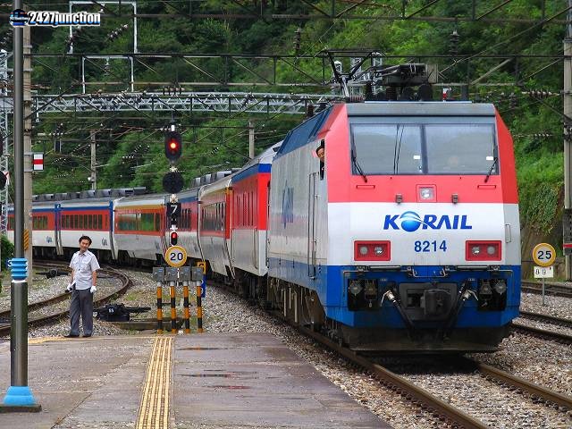 ![]() | 電気機関車が牽引するムグンファ号。中央線、太白線、嶺東線、忠北線、湖南線のムグンファ号は電気機関車牽引列車である。 太白線 甑山にて |