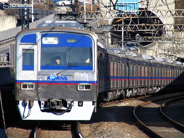 ![]() | 地下鉄3号線に乗り入れたKORAIL3000系。ソウル交通公社4000系と同一設計。GTO-VVVF制御である。2006年に全車が新塗装化された。 玉水にて |