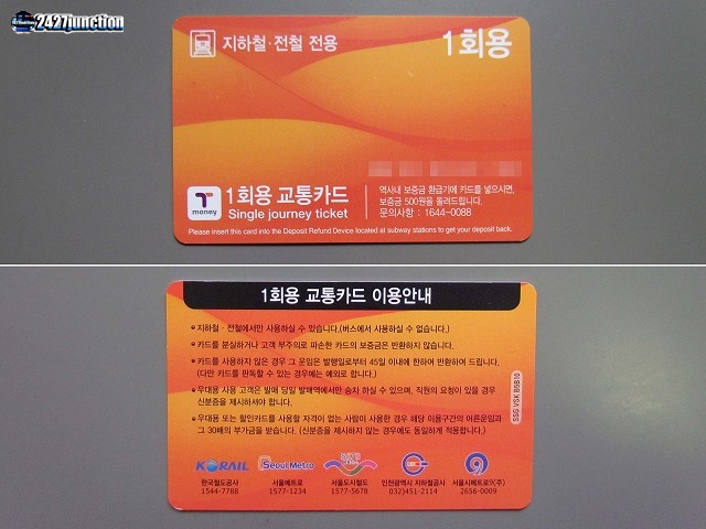 保証金(500ウォン)が加算された額で販売されている。デポジットは改札を出た後、「保証金券売機」で払い戻しが受けられる。