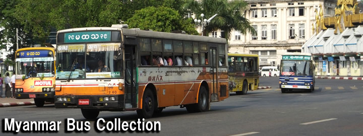 また、日本全国の路線バス・高速バス・観光バスの中古バス車両がミャンマー全土で活躍している(最近では韓国の中古バスも増加しつつある)。日本時代の塗装そのままに走っているものも少なくない。